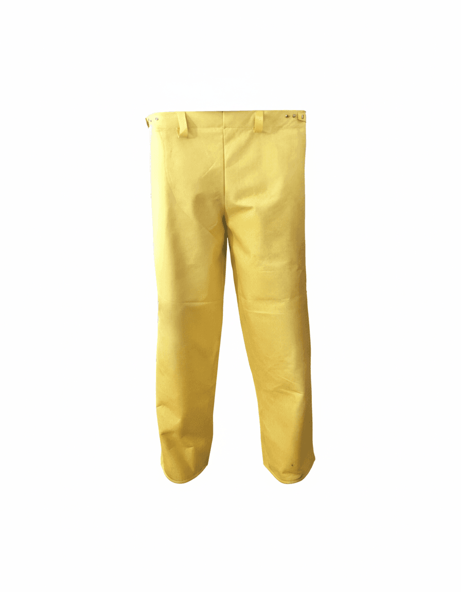 El pantalón vaqueta está confeccionado en cuero de res tipo vaqueta de alta calidad, cosido con hilo de alta resistencia y equipado con broches o velcro laterales y pasadores para cinturón. Su diseño liviano y ergonómico ofrece protección térmica y mecánica en soldadura, fundición, construcción y metalmecánica. No apto para exposición a aceites o hidrocarburos.