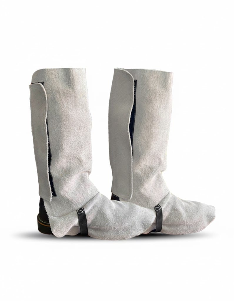 Las polainas carnaza brindan protección térmica y mecánica frente a chispas y partículas metálicas en procesos de soldadura.