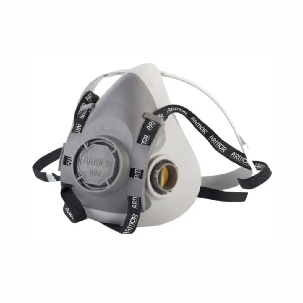 Respirador media cara Armor 602 en polímero hipoalergénico, ligero y ergonómico. Compatible con filtros ARMOR para protección frente a gases, vapores y partículas.
